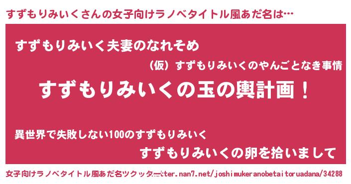 | 男性向けラノベタイトル風あだ名 | 『転生したらすずもりみいくだった件』 |