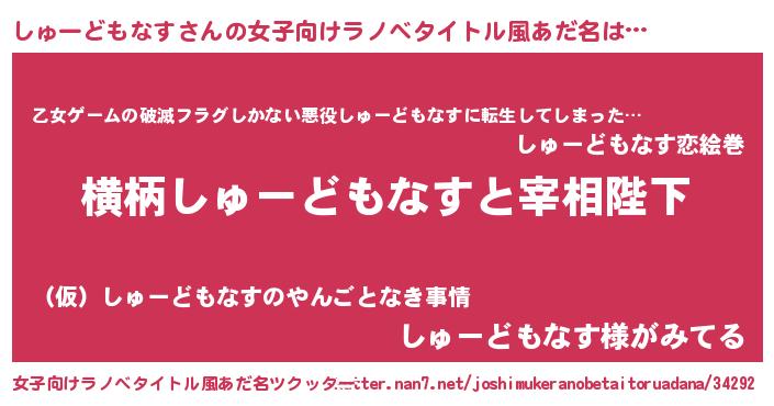 | 男性向けラノベタイトル風あだ名 | 『しゅーどもなすに滅ぼされるだけの簡単なお仕事です』 |