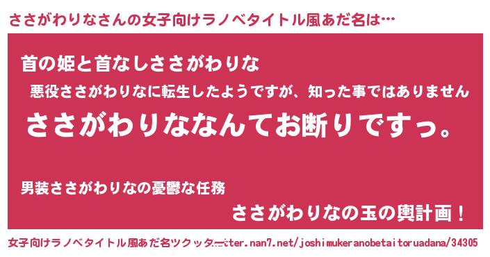 | 意味不明あだ名 | 『自称ささがわりな』 |
