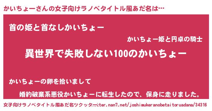 | 男性向けラノベタイトル風あだ名 | 『かいちょーという概念が存在しない退屈な世界 』 |
