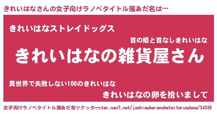 | 男性向けラノベタイトル風あだ名 | 『やはりきれいはなの青春ラブコメはまちがっている 』 |