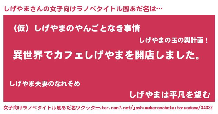 | 男性向けラノベタイトル風あだ名 | 『誰もが恐れるあのしげやまが、ぼくの専属メイドになるようです。』 |