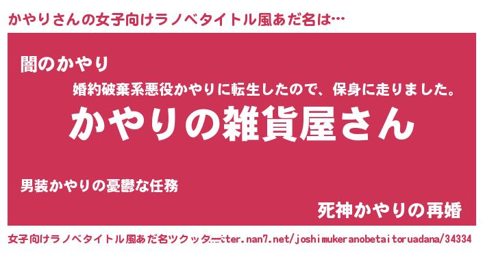 | 胡散臭い通販商品みたいなあだ名 | 『幸せが訪れる高級そうな絵画…その名も「かやり」』 |