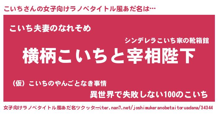 | 男性向けラノベタイトル風あだ名 | 『こいちに滅ぼされるだけの簡単なお仕事です』 |
