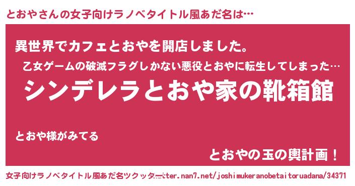 | 胡散臭い通販商品みたいなあだ名 | 『来世でも幸せになれる水素水…その名も「とおや」』 |