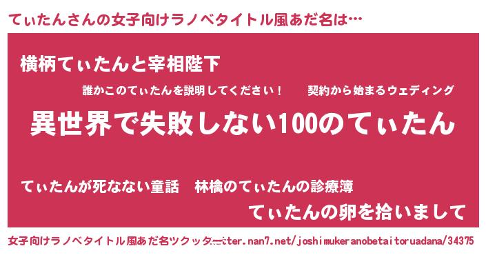 | 男性向けラノベタイトル風あだ名 | 『てぃたんという概念が存在しない退屈な世界 』 |