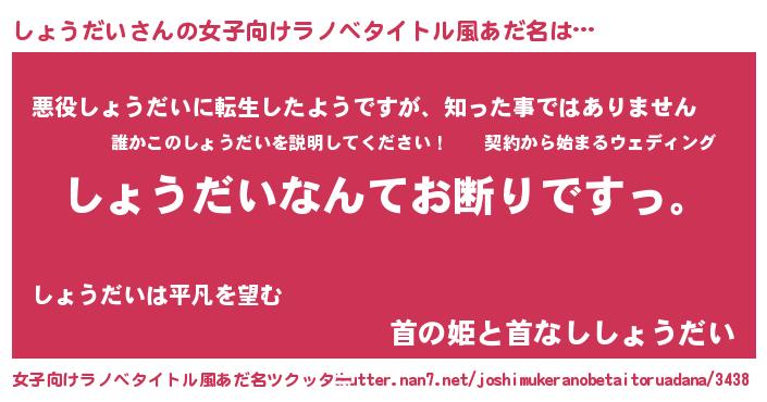 | ヒーロー風カッコイイあだ名 | 『超時空戦士ショウダイ』『仮面ショダー』 |
