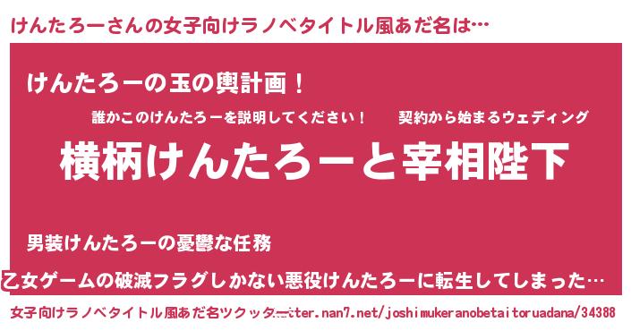 | ヘコむあだ名 | 『けんふぇ~』『けんっちょ』『豆乳』 |