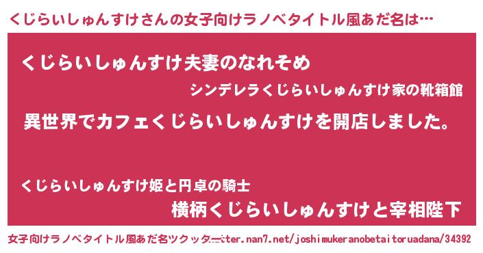 | ヘコむあだ名 | 『くじらいしゅんすけ(笑)』『くじにゅー』 |