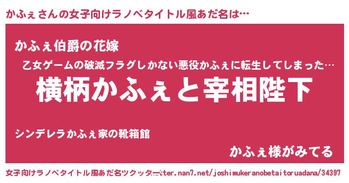 | 胡散臭い通販商品みたいなあだ名 | 『運命の人と巡り会える高級そうな絵画…その名も「かふぇ」』 |