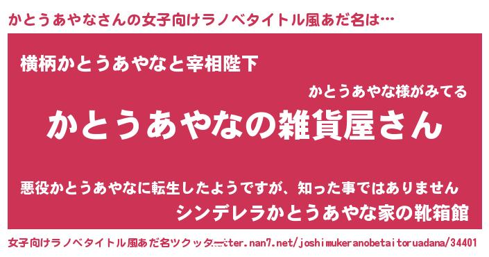 | 欧米人風あだ名 | 『かとうあやなクリステル』 |