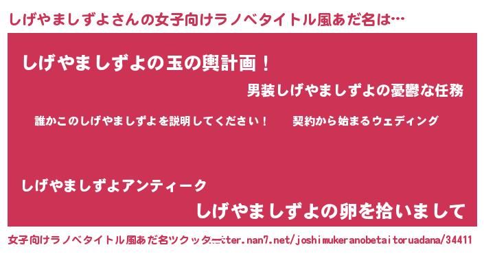 | 男性向けラノベタイトル風あだ名 | 『シゲヤマシズヨアートオンライン』 |
