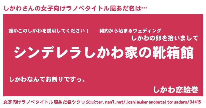 | 男性向けラノベタイトル風あだ名 | 『緋弾のシカワ』『魔法科高校のしかわ』 |
