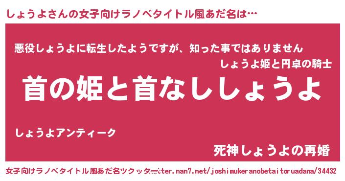 | ヘコむあだ名 | 『しょにゅー』『しょうよ(小並感)』 |