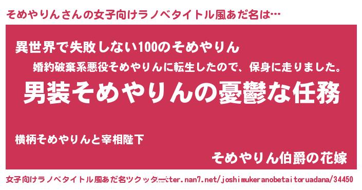 | 胡散臭い通販商品みたいなあだ名 | 『来世でも幸せになれる健康食品…その名も「そめやりん」』 |