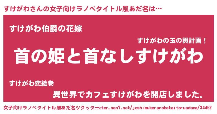 | 男性向けラノベタイトル風あだ名 | 『はたらくすけがわさま!』 |
