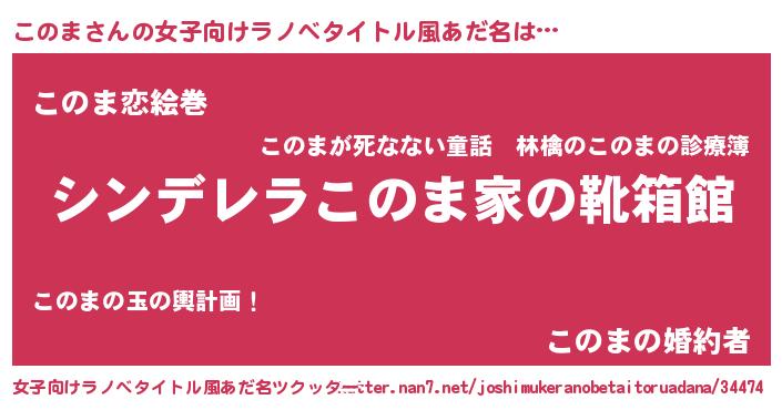 | 男性向けラノベタイトル風あだ名 | 『緋弾のコノマ』『魔弾の王とこのま』 |