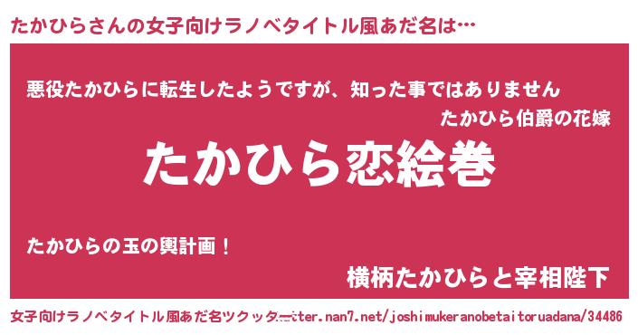 | 男性向けラノベタイトル風あだ名 | 『ノーゲーム・ノータカヒラ』 |