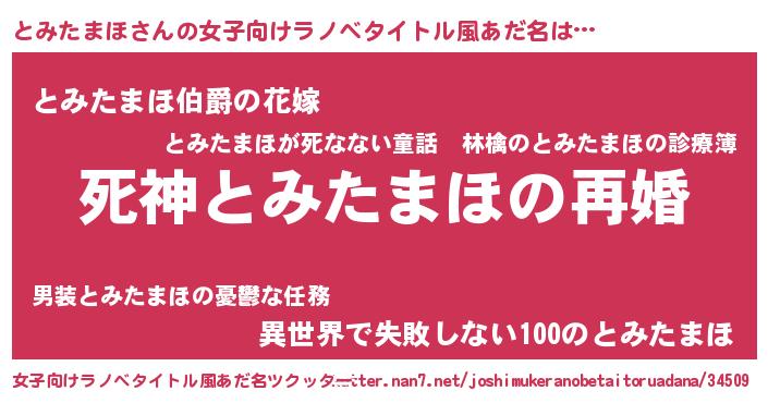 | ヒーロー風カッコイイあだ名 | 『天空の使者とみたまほ』『仮面トミダー』 |