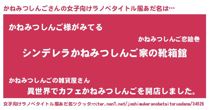 | 男性向けラノベタイトル風あだ名 | 『冴えないかねみつしんごの育てかた』 |