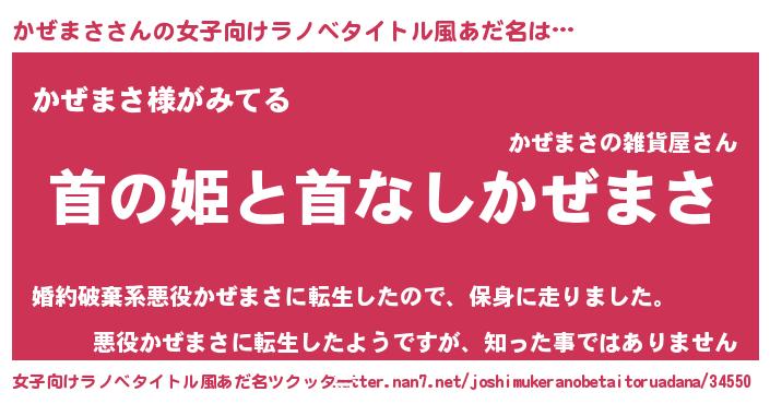 | 男性向けラノベタイトル風あだ名 | 『はたらくかぜまささま!』 |