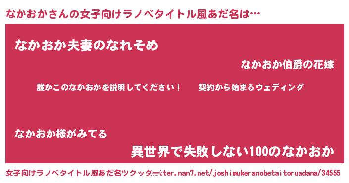| 男性向けラノベタイトル風あだ名 | 『ナカオカアートオンライン』 |