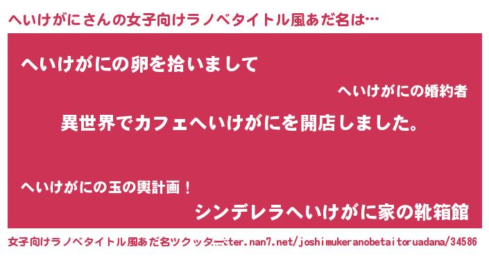 | 意味不明あだ名 | 『永久保存へいけがに』『自称へいけがに』 |