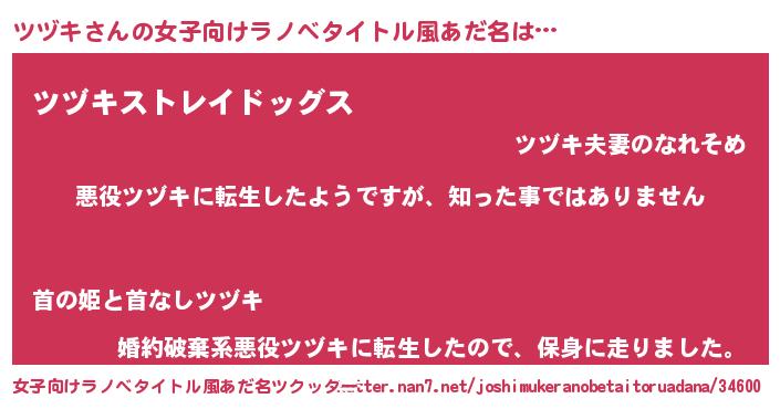 | 意味不明あだ名 | 『住所不定無職ツヅキ(89歳)』『自称ツヅキ』 |