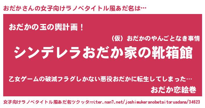 | 男性向けラノベタイトル風あだ名 | 『緋弾のオダカ』『おだかの憂鬱』 |