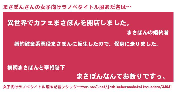 | 胡散臭い通販商品みたいなあだ名 | 『絶対に幸福をもたらす水素水…その名も「まさぼん」』 |