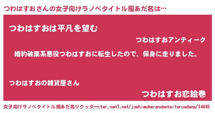 | 男性向けラノベタイトル風あだ名 | 『ツワハスオスレイヤー』 |