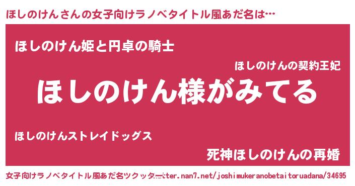 | 男性向けラノベタイトル風あだ名 | 『ほしのけんの嫁は女の子じゃないと思った?』 |