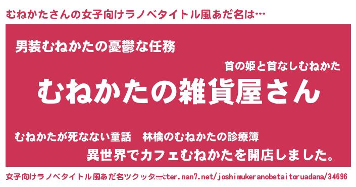 | 男性向けラノベタイトル風あだ名 | 『やはりむねかたの青春ラブコメはまちがっている 』 |