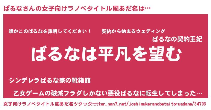 | 胡散臭い通販商品みたいなあだ名 | 『信頼と実績のペンダント…その名も「ばるな」』 |