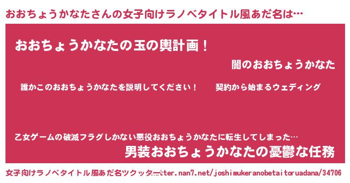 | 胡散臭い通販商品みたいなあだ名 | 『億万長者になれる霊験あらたかなお札…その名も「おおちょうかなた」』 |