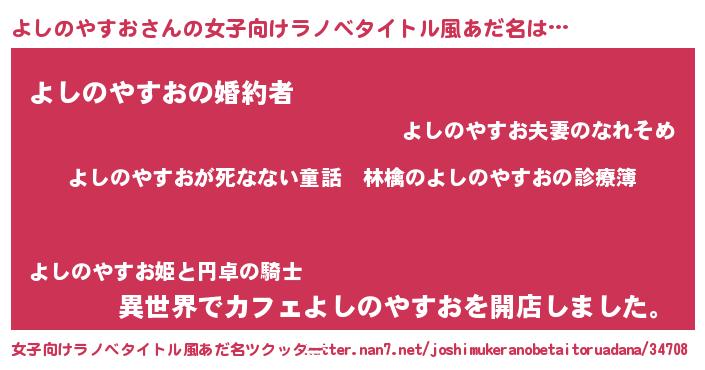| 男性向けラノベタイトル風あだ名 | 『魔弾の王とよしのやすお』 |