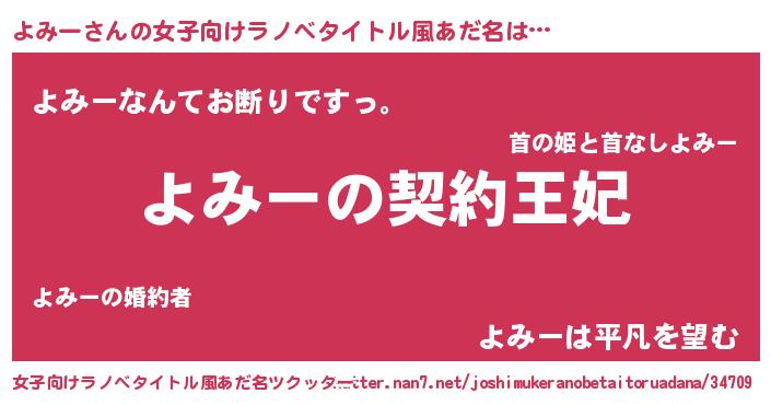 | 胡散臭い通販商品みたいなあだ名 | 『来世でも幸せになれる健康食品…その名も「よみー」』 |
