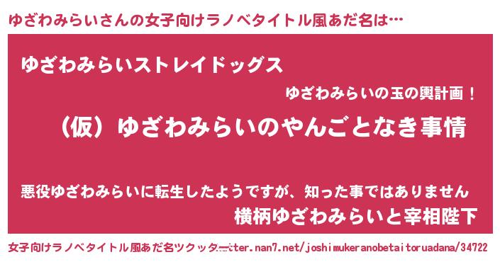 | 胡散臭い通販商品みたいなあだ名 | 『必ず成功するブレスレット…その名も「ゆざわみらい」』 |