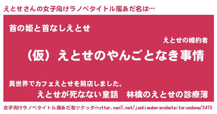 | 胡散臭い通販商品みたいなあだ名 | 『必ず成功するブレスレット…その名も「えとせ」』 |