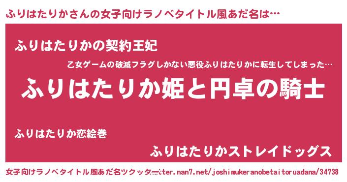 | 男性向けラノベタイトル風あだ名 | 『ふりはたりかの憂鬱』 |