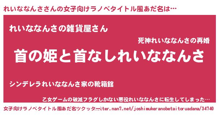 | 男性向けラノベタイトル風あだ名 | 『はたらくれいななんささま!』 |