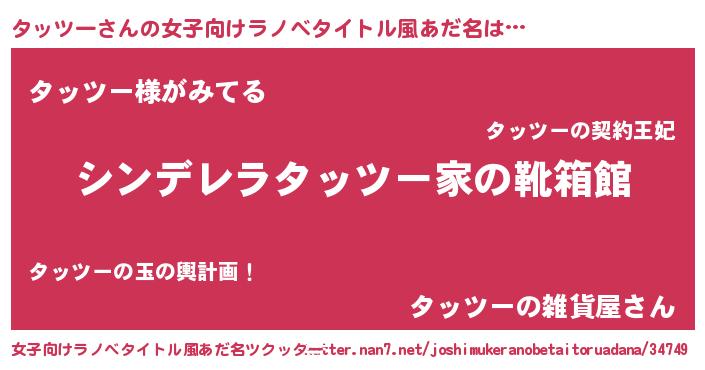 | 胡散臭い通販商品みたいなあだ名 | 『信頼と実績のネックレス…その名も「タッツー」』 |