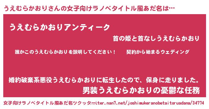 | 男性向けラノベタイトル風あだ名 | 『ウエムラカオリアートオンライン』 |