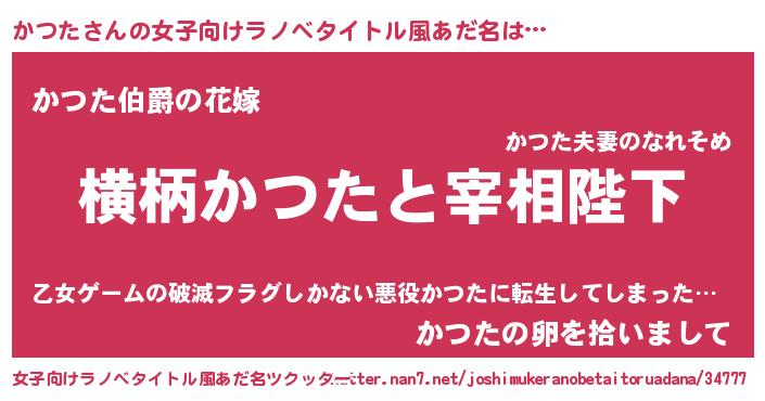 | 男性向けラノベタイトル風あだ名 | 『かつたに滅ぼされるだけの簡単なお仕事です』 |