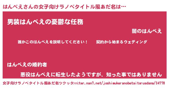 | 男性向けラノベタイトル風あだ名 | 『ハンベエアートオンライン』 |