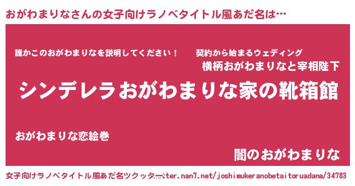| 胡散臭い通販商品みたいなあだ名 | 『必ず成功する霊験あらたかなお札…その名も「おがわまりな」』 |