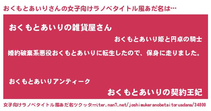 | 胡散臭い通販商品みたいなあだ名 | 『幸せが訪れる高級そうな絵画…その名も「おくもとあいり」』 |