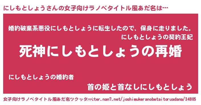 | 男性向けラノベタイトル風あだ名 | 『ノーゲーム・ノーニシモトショウ』 |