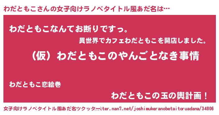 | 男性向けラノベタイトル風あだ名 | 『わだともこの憂鬱』 |