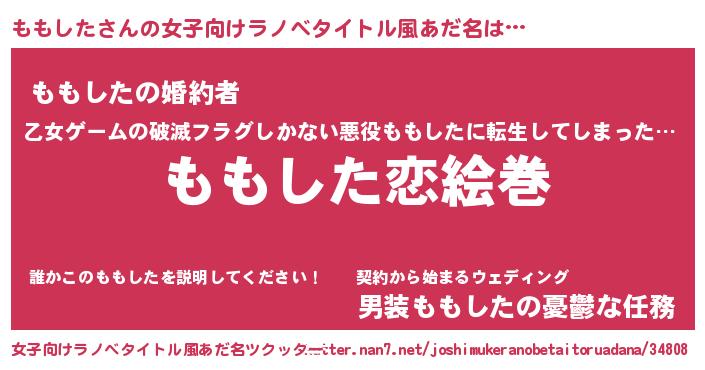 | 男性向けラノベタイトル風あだ名 | 『おまえをオタクにしてやるから、俺をももしたにしてくれ! 』 |